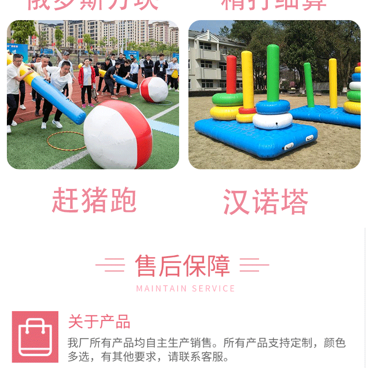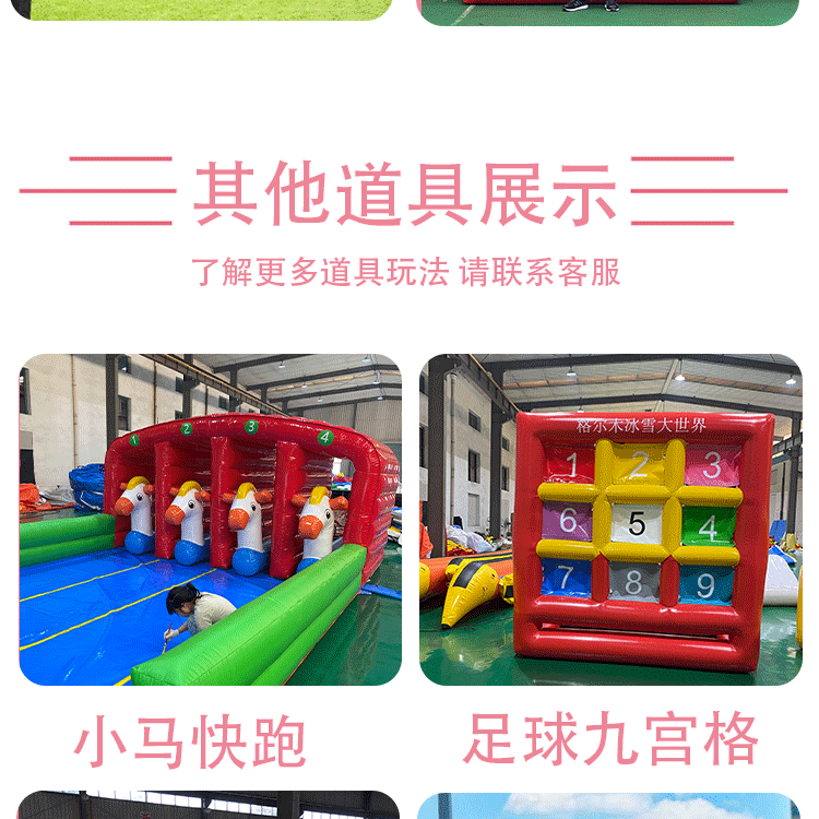 | Цвет: | 2,5*2,5 -метрового футбола девять дворцов, Футбольная сетка из девяти квадратов 3*3 метра, Надувные злые птицы 2*3 м., Черепаха и Заяц на 5 человек, Надувная ханойская башня, 3м, Футбольные дротики, 2м, Футбольные дротики, 2.5м, Тетрис, 2.5м, Молоток |