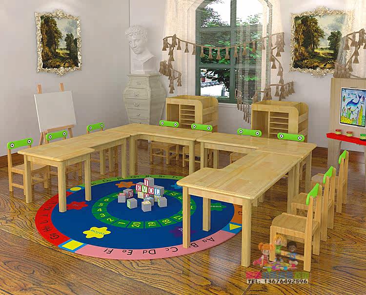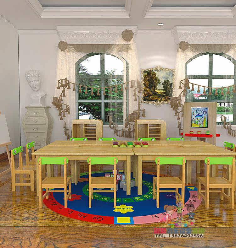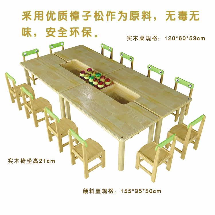 Детский сад с твердым деревом и стульями Детский полный комплект камфоры сосны обучающий стол пигмент