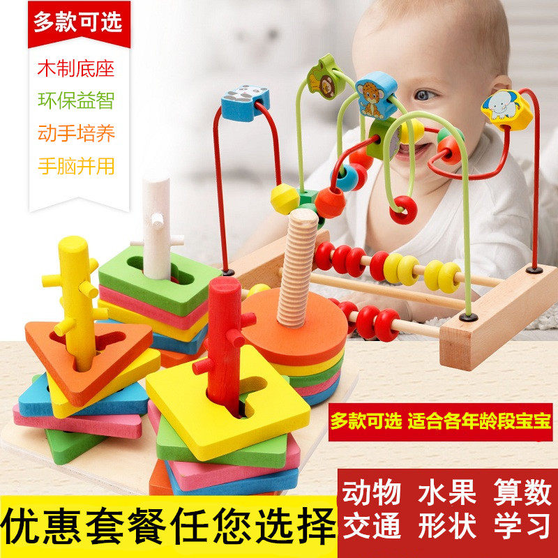 Детские бусы с бусинами, трехмерный деревянный конструктор для мальчиков для девочек, интеллектуальная игрушка для младенца, 3 лет, раннее развитие