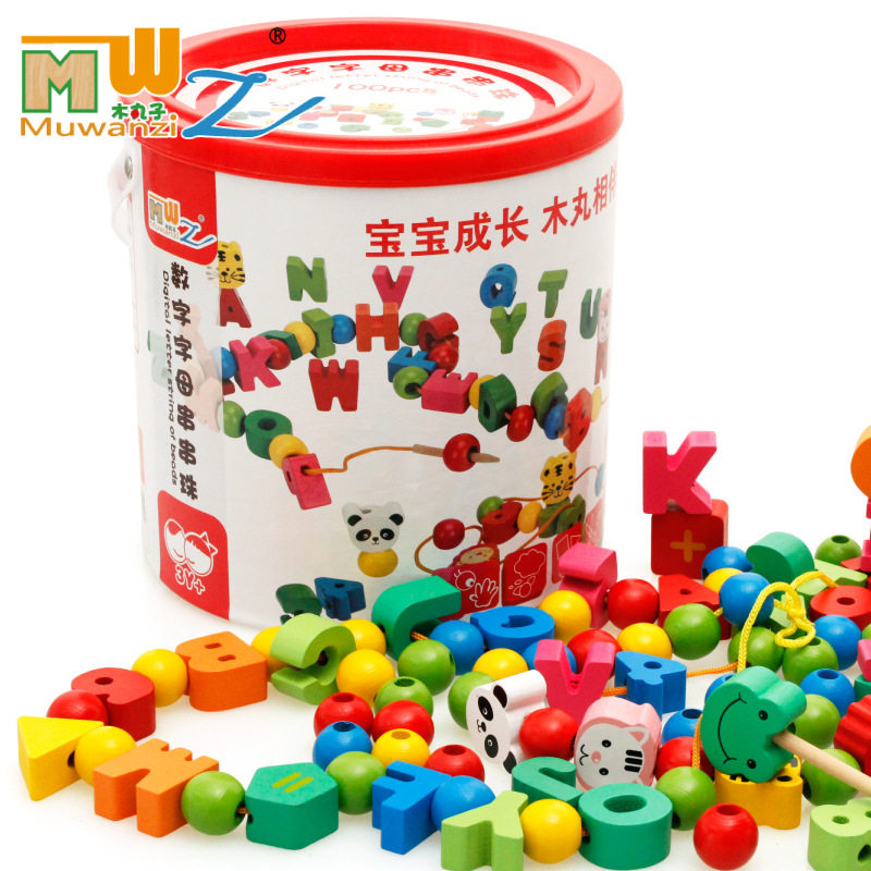 Детские бусы для младенца, бусины с бусинами, интеллектуальный конструктор, деревянная детская игрушка, 1-2 лет