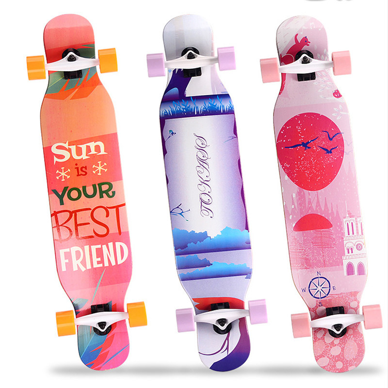 Скейтборд для начинающих, лонгборд для взрослых на четырех колесах с двумя изогнутыми концами