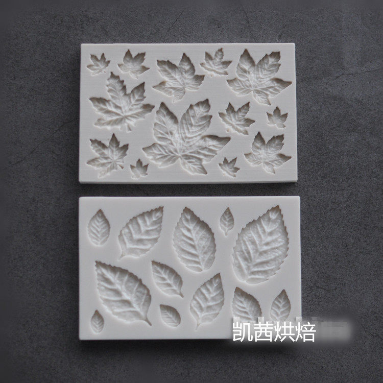 Кленовый лист с розой в составе, компактный фондан, мусс, акриловая глина, силиконовая форма
