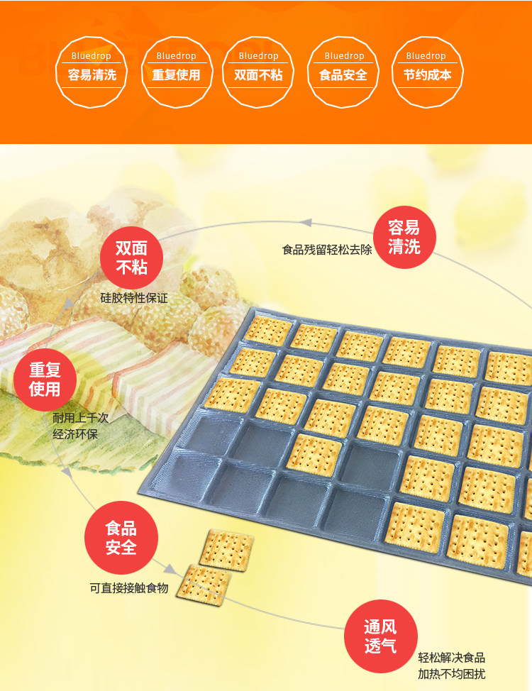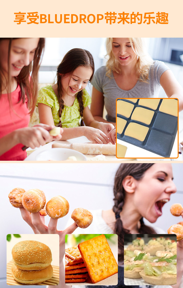 Особенности: 60-80%воды в влажном тесте.Силиконовые хлебные плесени на гриле имеют встроенное стеклянное волокно.Долгому срока службы не нужно чистить масло или масло и неживую бумагу на поверхности внутренней поверхности грилевой кремниковой формы. Рассеяние быстрее, а процесс вулканизации платины соответствует безопасности пищевых продуктов.Продукты хорошо -выключение зарубежных рынков.