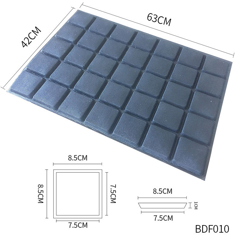 Размер: 42x63 см, 35 слот, размер однолезового слота 8,5 (длинный) x8,5 (ширина) x1 (глубокая) CM, подходящая для коммерческих лоток для выпечки, домохозяйственная резка не может повлиять на использование.Плесень может быть использована по очереди.