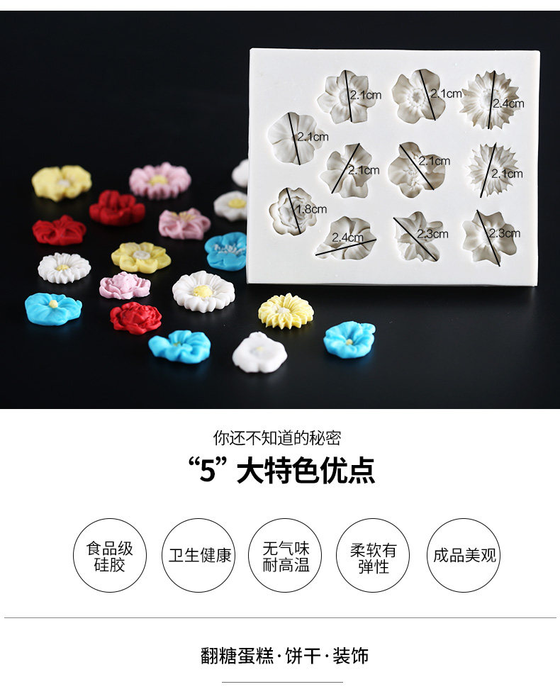 Силиконовый фондан с розой в составе, силиконовая форма, глина, мыло ручной работы, форма для мыла, DIY, в цветочек