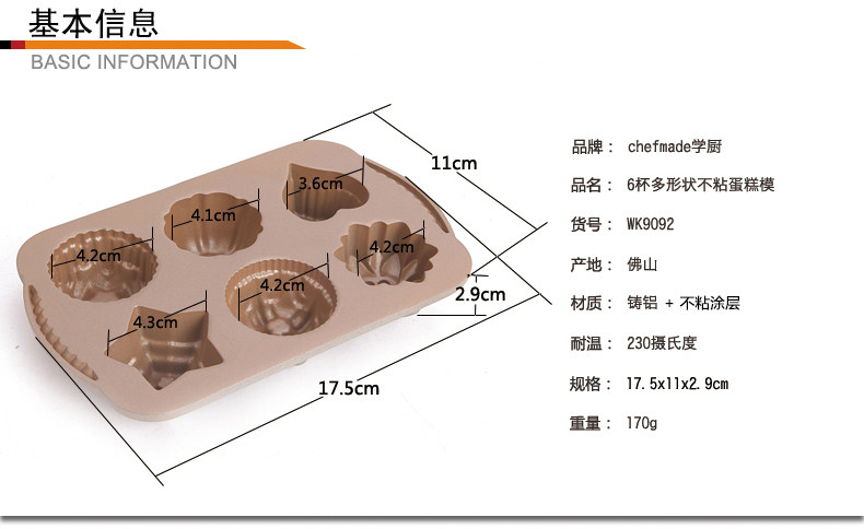 Chefmade Kitchen Mini Crystal Aluminium 6 стакана мульти -образная модель торта Crown/Hearts/Flower Cake Model