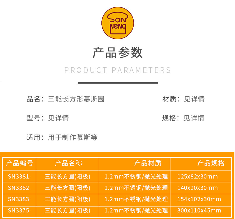 三能 Инструменты для выпечки прямоугольное кольцо для мусса SN3381SN3382 SN3383 SN3375 форма для резки