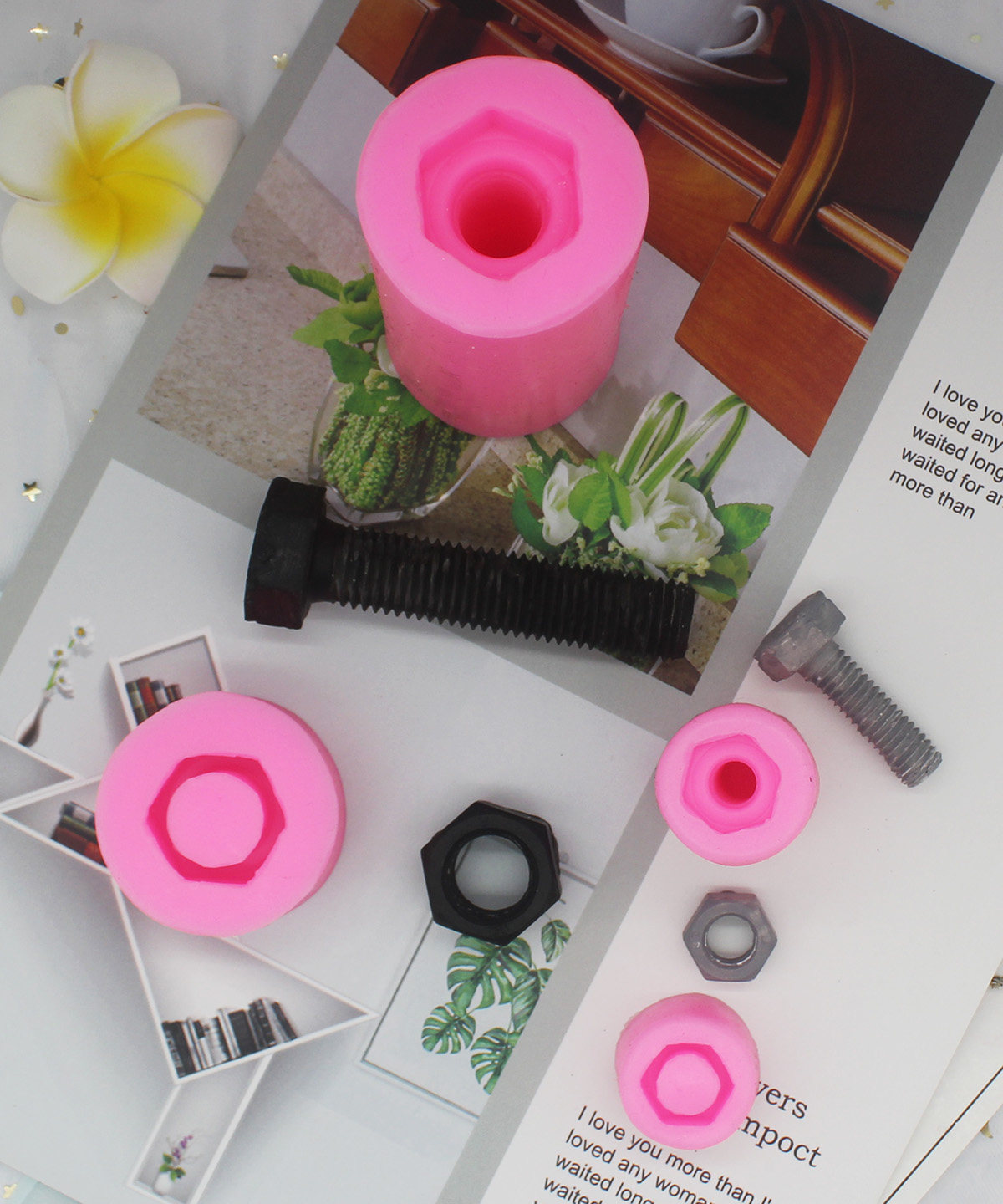 Размер формы: P988, большой размер: винтовая форма: 2,5*2,5*8 см. Выпуск формы для гаек: 2,4*2,4*1,4 см