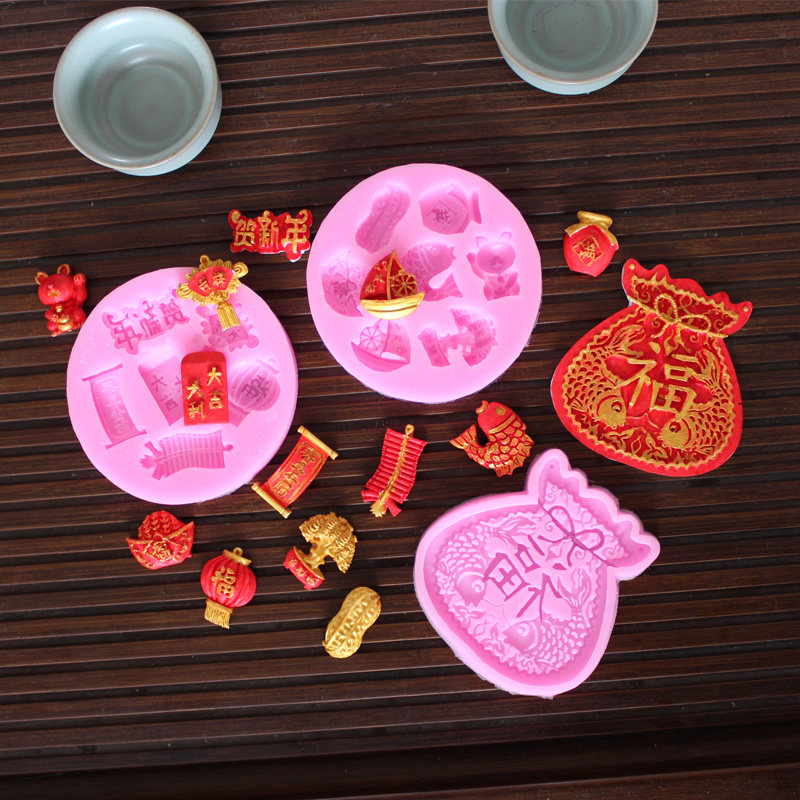 Поздравляем удачу удачи, благословение силиконовой плесени, благоприятный Ручун, Весна, приветствуйте удачу, богатство помадно торт шоколад