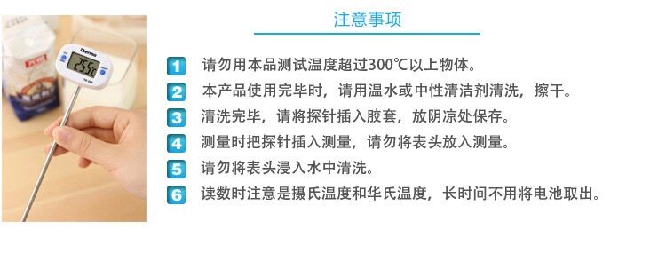 Пожалуйста, обратите внимание на использование: 1. Не измеряйте объекты с диапазоном температуры, выше или ниже, чем температурный счетчик, и избегайте использования термометра при высокой или слишком низкой температуре, чтобы избежать измерения температуры или повреждения термометра.