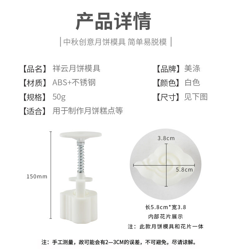 Xiangyun Moon Cake плесень новая рука -общепринятое домашнее использование мунг -бобового пирога Ледяной кожа национальный ветер 50 г грамм средняя точка