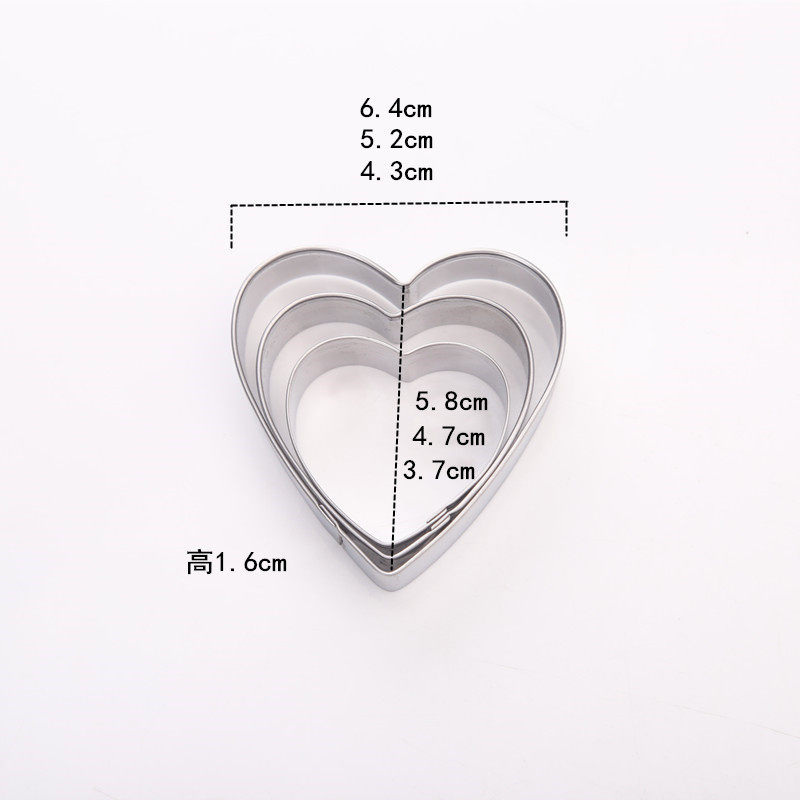 Компактная форма в виде сердечка из нержавеющей стали, фондан, глина, комплект, 3 шт