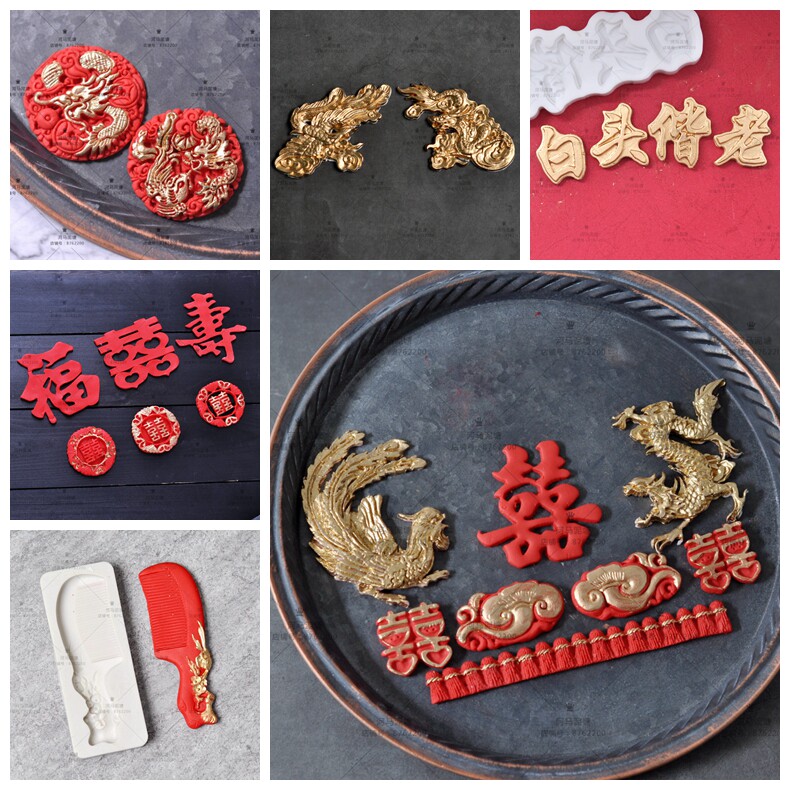 Классическая расческа, акриловый фондан, десертная силиконовая форма, китайский стиль, дракон и феникс