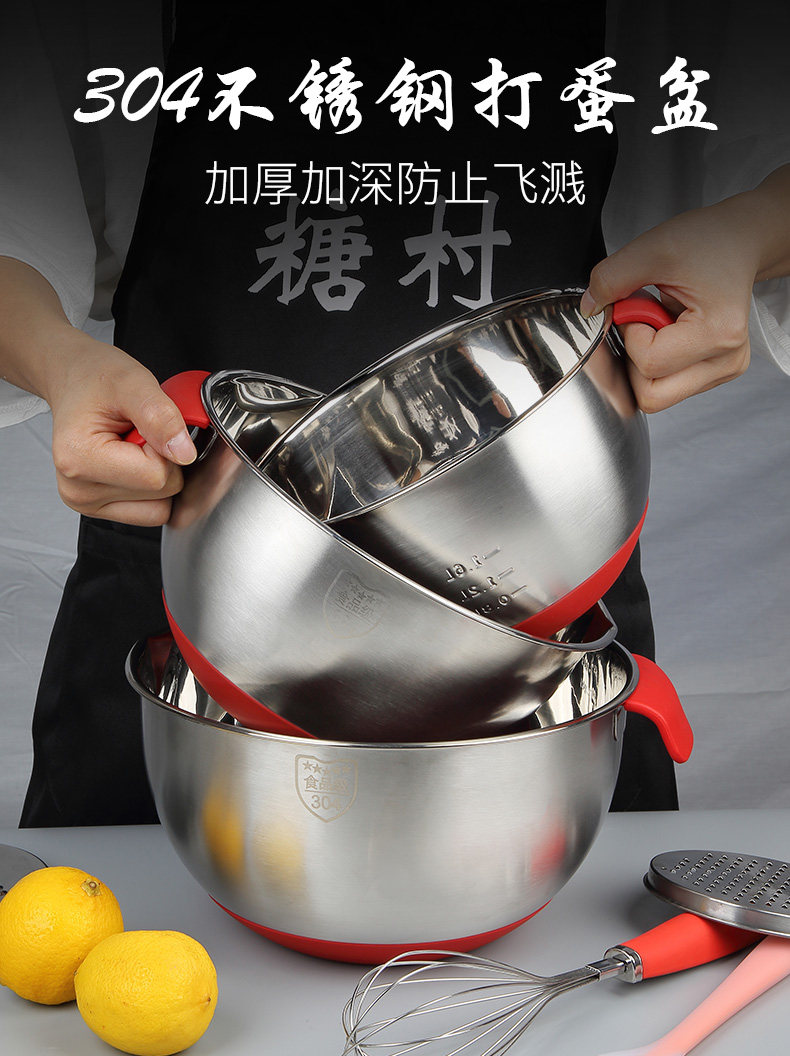 糖村 Пищевая класс 304 из нержавеющей стали распухните бассейн с утолщением для выпечки с разбрызгиванием для разрыхлителей дома и лапши утечка