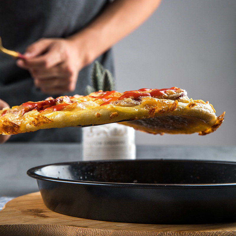 Пицца плесень сгущенная, не пожилая 6 -дюймовая 8 -дюймовая 9 -дюймовая углеродистая стальная покрытие пицца диск для выпекания дома для выпекания