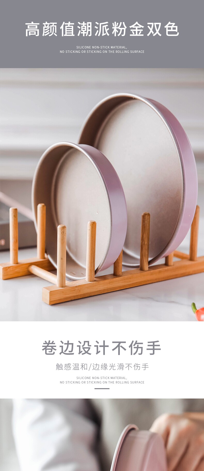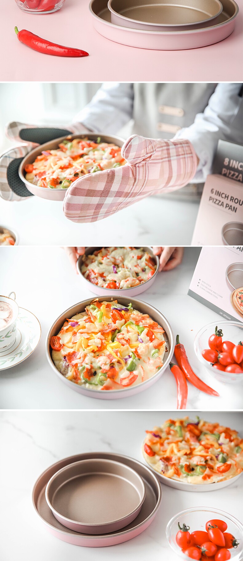 - 8-дюймовая розовая карбоновая стальная пиццевая тарелка с импортированным покрытием Huafu