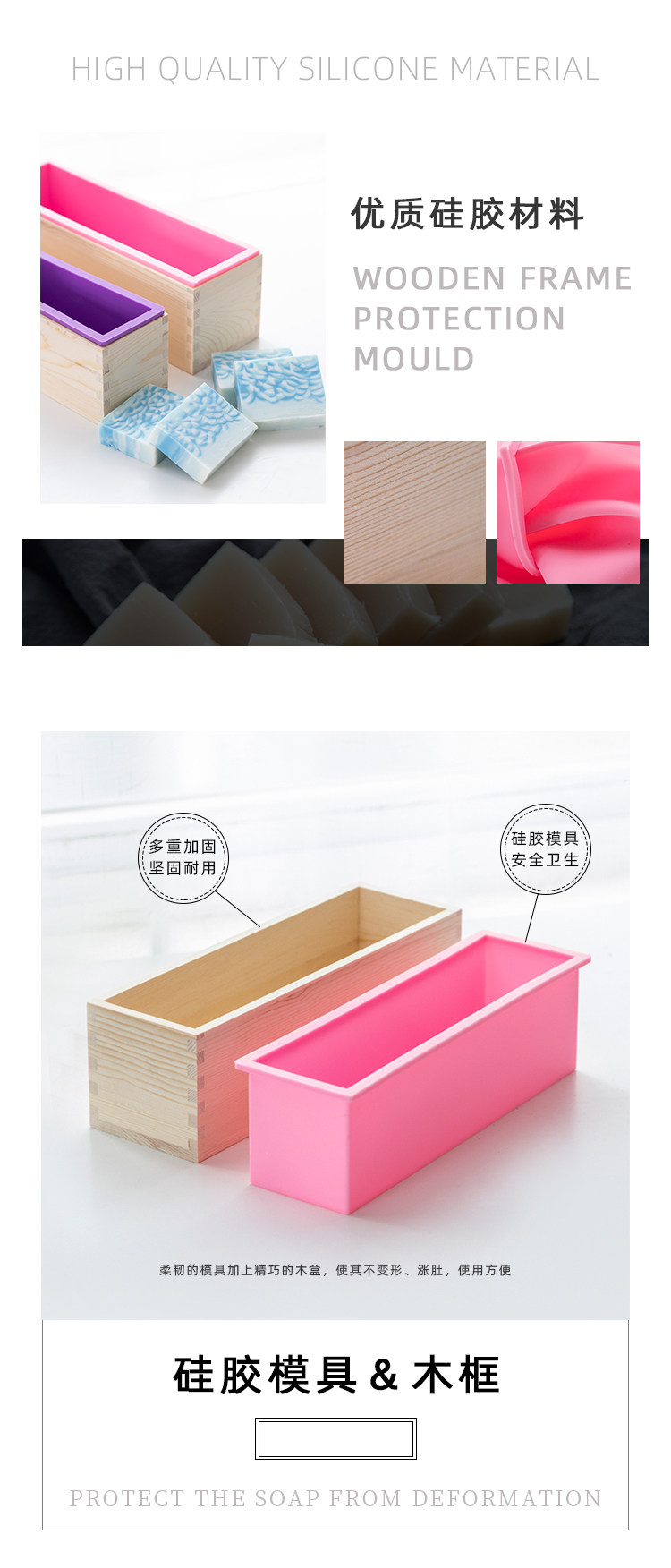 Ai Bao Fang Прямоугольное мыло ручной мыло силиконовая плесень+деревянная рама стандартное блочное мыло мыло мыло кремниевое тост оформление холодного мыла