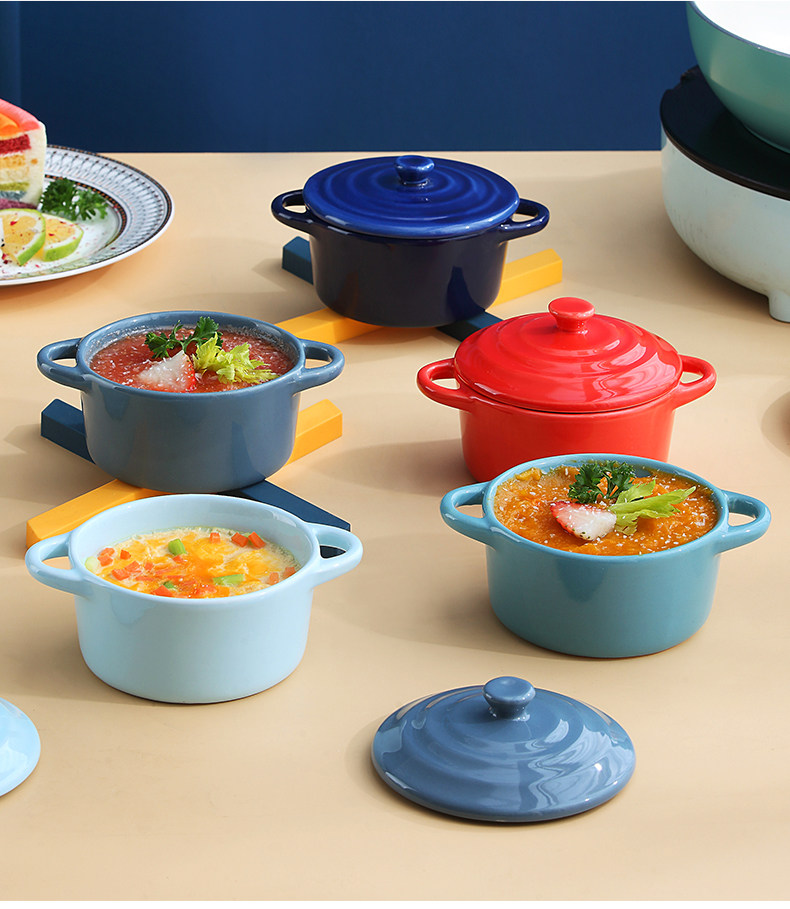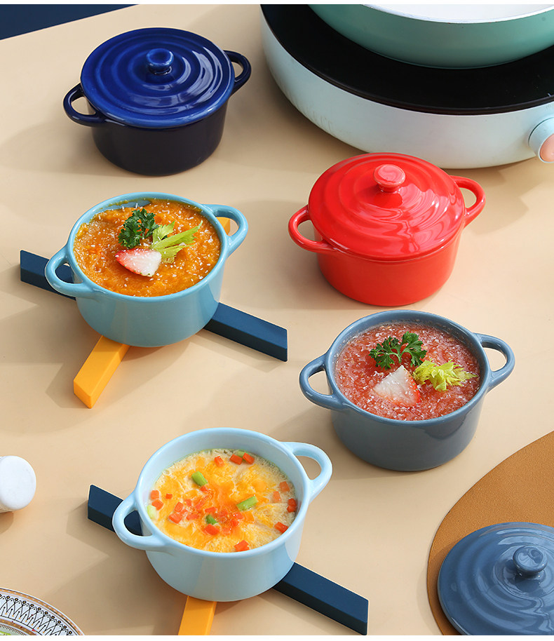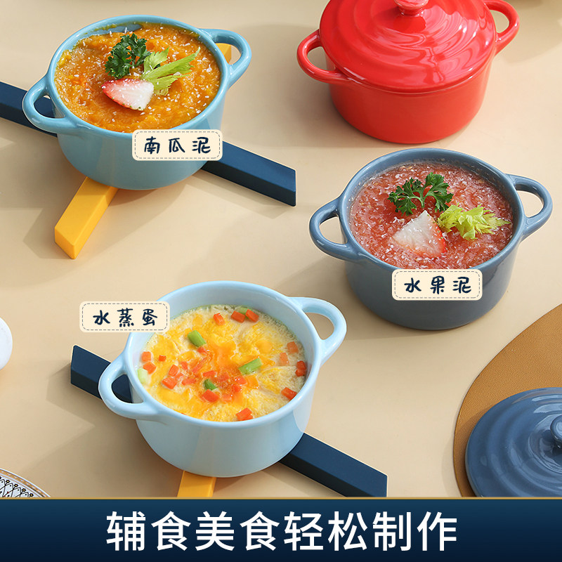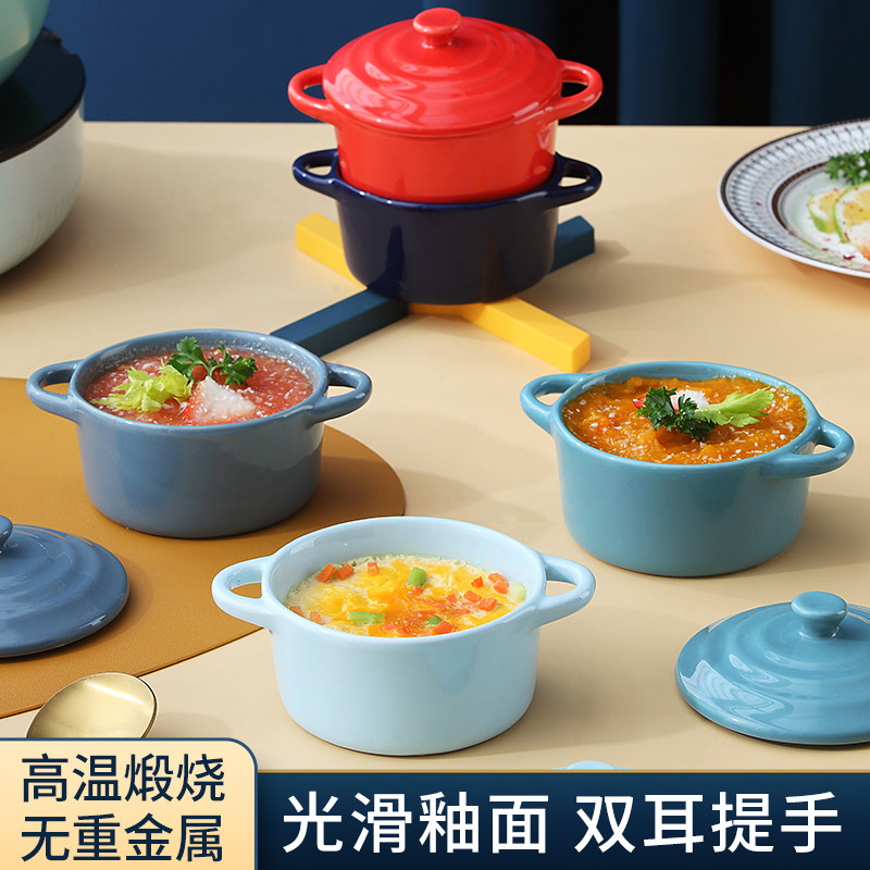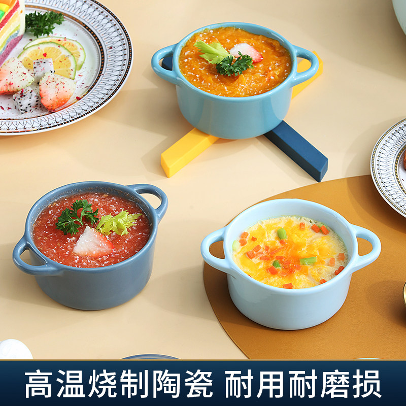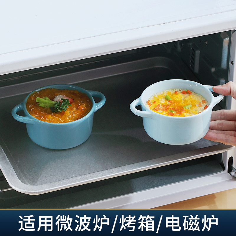 Керамическая печь для выпечки с двойной жареной миской с жареной миской. Дополнительная пищевая миска с микроволновой печи, специальная миска, один человек ест запеченную рисовую миску