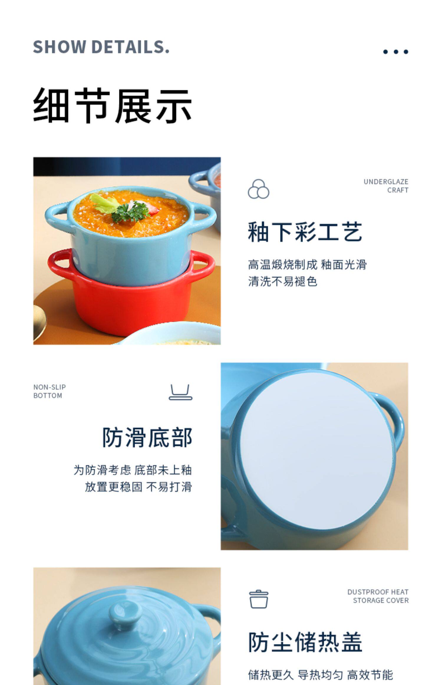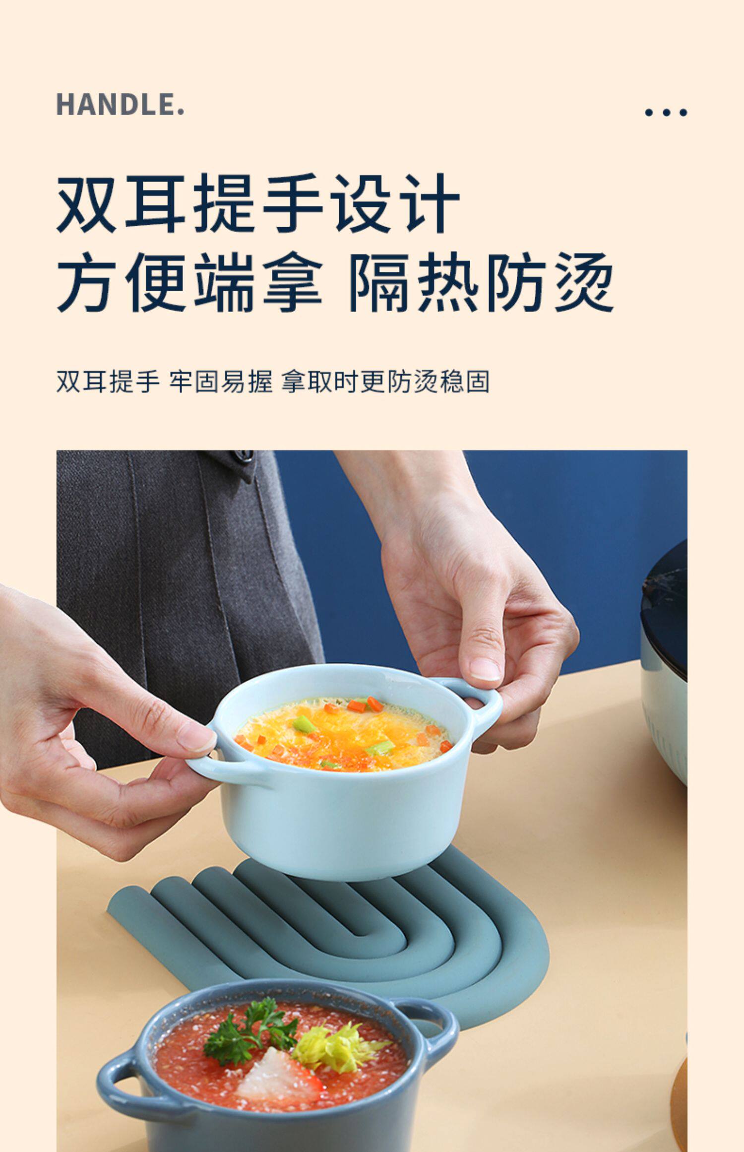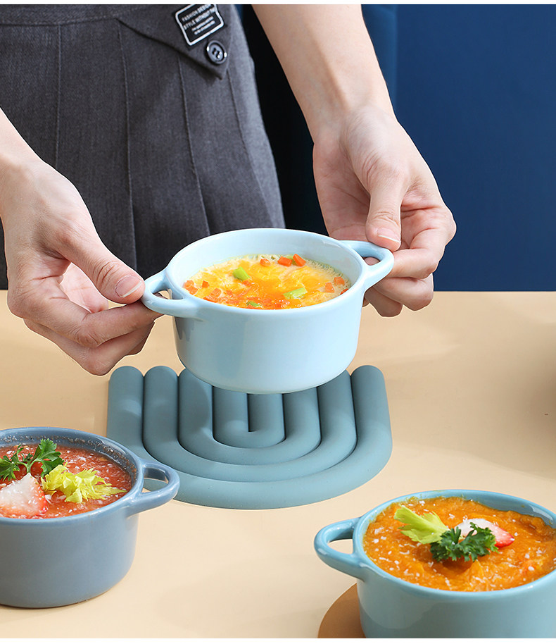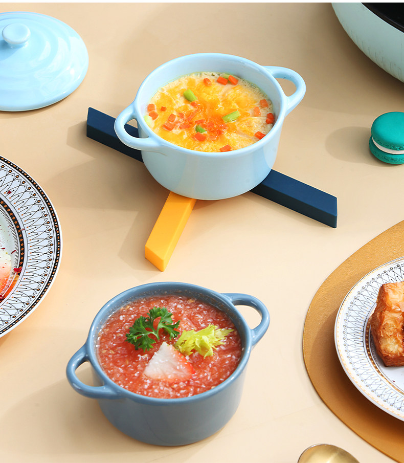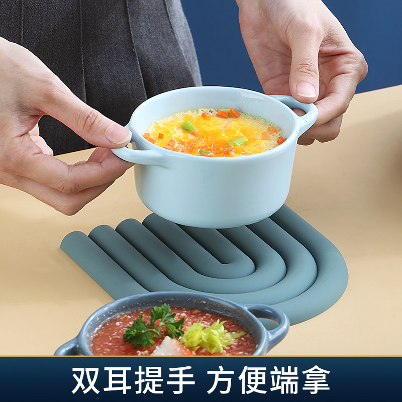Керамическая печь для выпечки с двойной жареной миской с жареной миской. Дополнительная пищевая миска с микроволновой печи, специальная миска, один человек ест запеченную рисовую миску