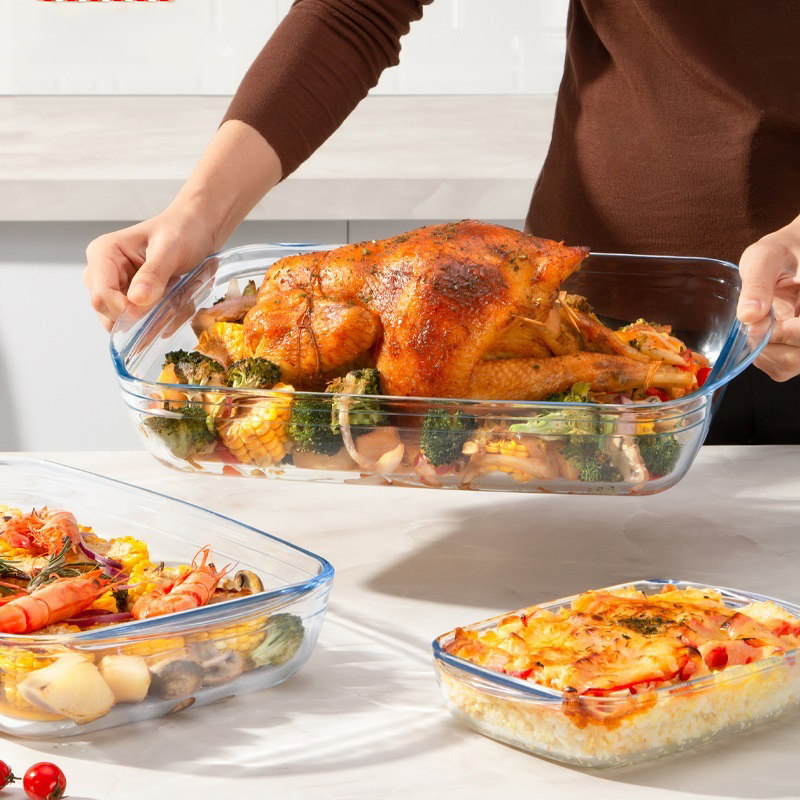 Самооперационная стеклянная выпечка для выпечки микроволновой печи Длинная паровая тарелка на гриле рыбная тарелка Парочная духовка специальная посуда морепродукты морепродукты