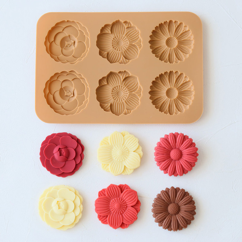 Японская котта, натуральная 6 последовательных силиконовых форм с тремя цветами, вишневый цвет, хризантема, снежный лотос, милый инструмент для шоколада «сделай сам»