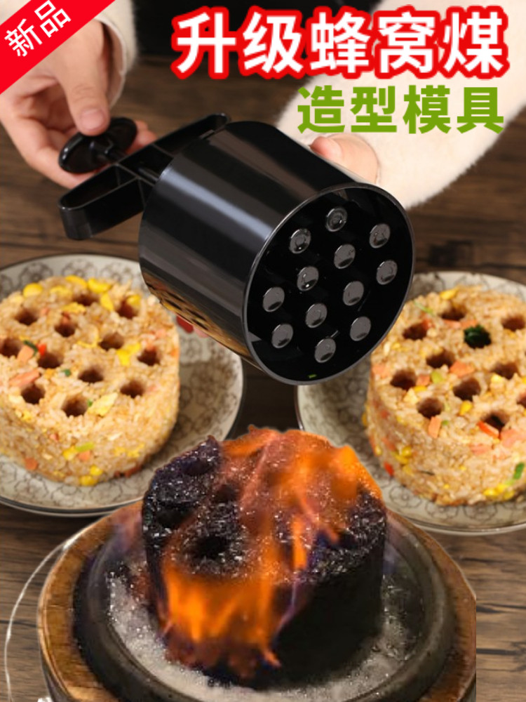 Кухня соты на угольную плесень творческий угольный шарик жареный рисовый пламя, угольный пирог, рисовый пирог, форма риса, артефакт тарелки
