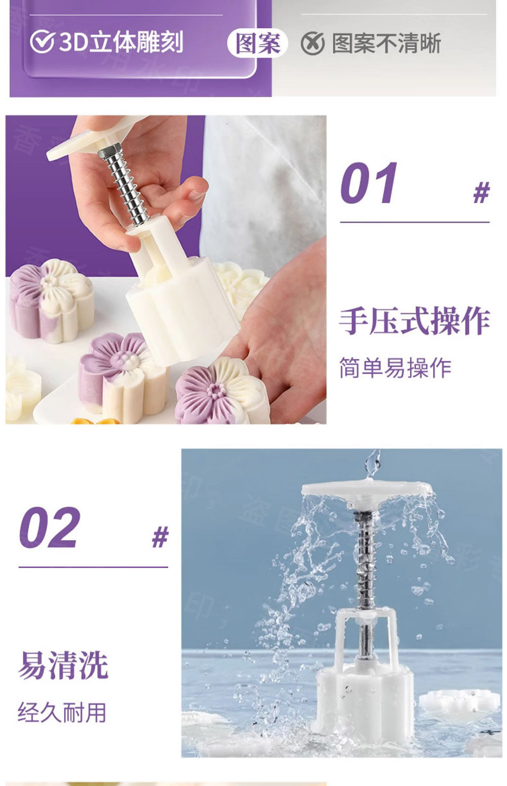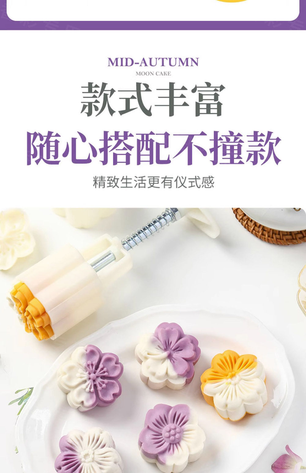 Плесень для лунного торта Новые торты, фиолетовый карточный ям, дополнительная пища, прессованная цветочная выпечка