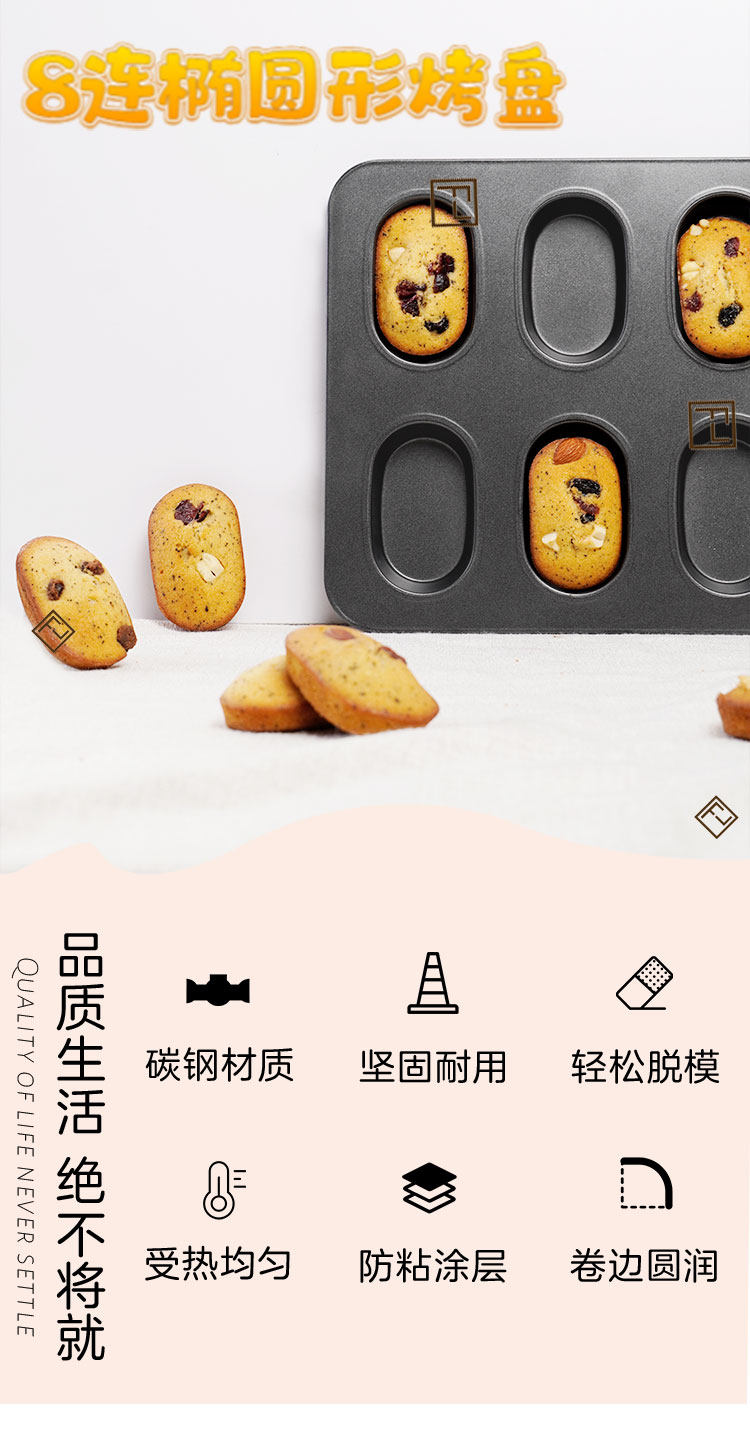Японская стиль 8 -обеспечивающая эллиптическая плесень не приклеивает толстый хлеб -закуски, многофункциональный противень для выпечки