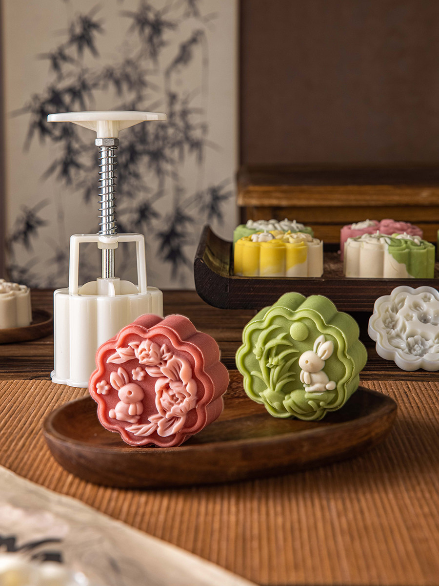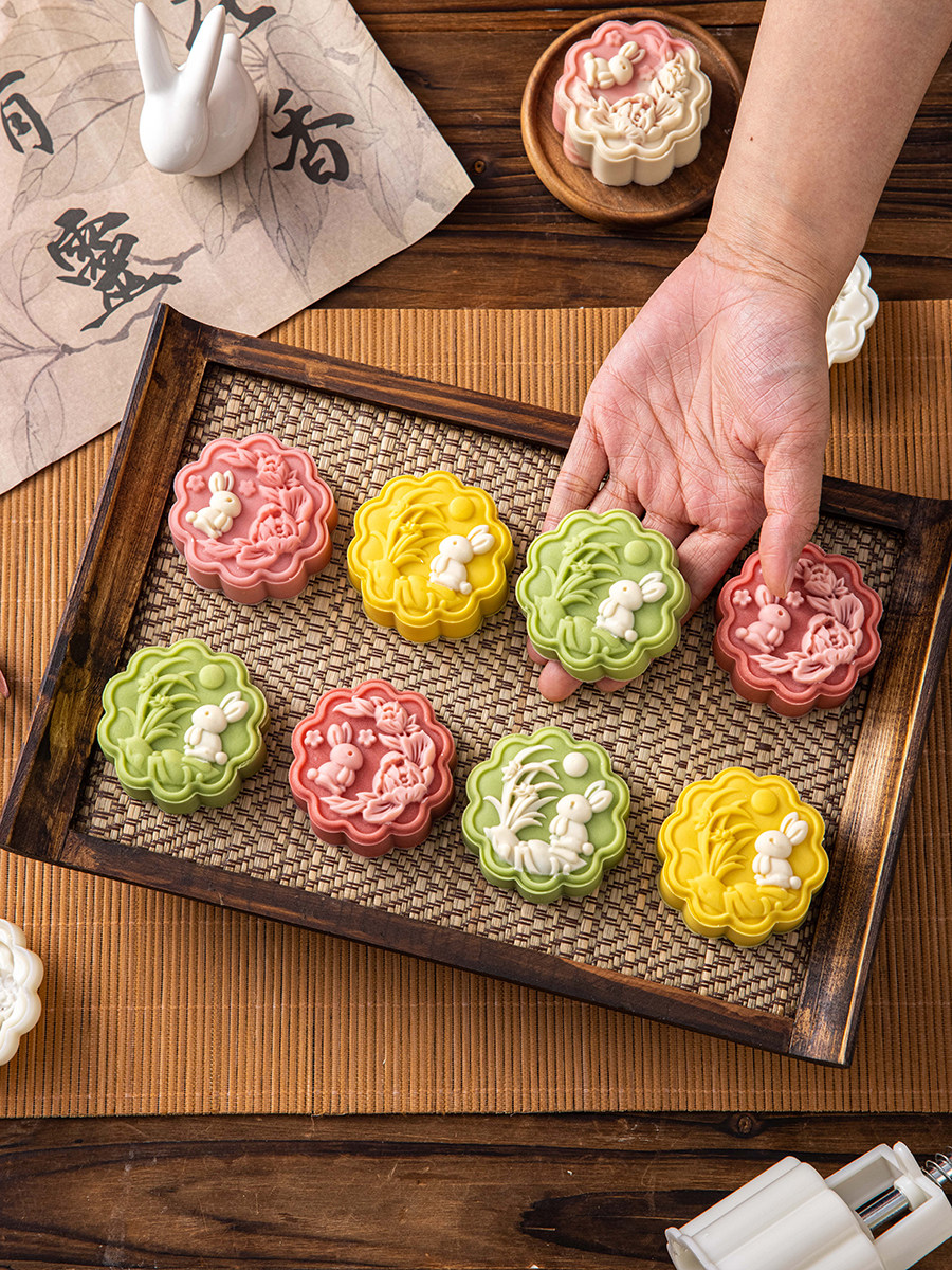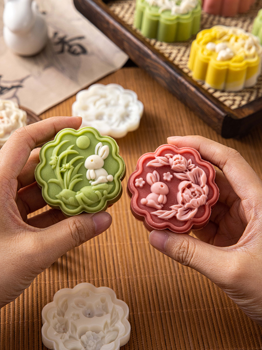 2025 новая форма для лунного кекса с кроликом, национальная тенденция, торт из маша, прессованный вручную, 50 г 75 г, цветочная передняя часть и ледяная кожа