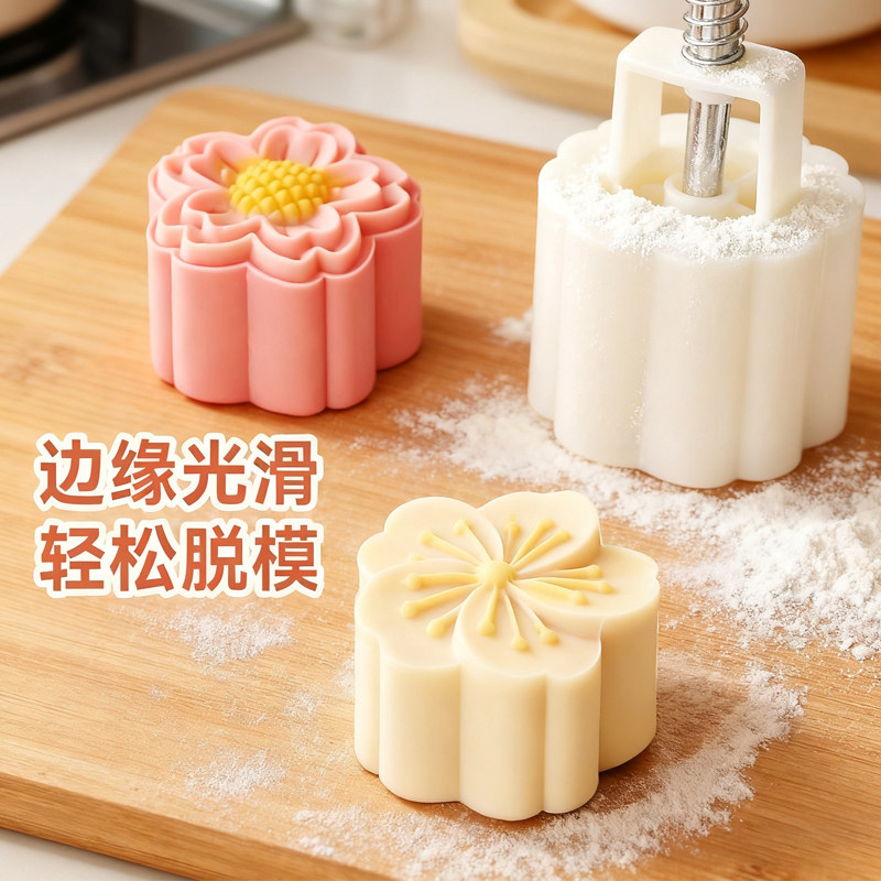 Форма для лунного кекса, прессованная вручную, 2025, новая домашняя пищевая прессованная форма для середины осени, сердце, снежная кожа, лунный пирог, 50 г, креатив