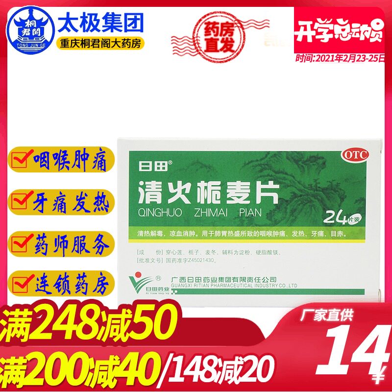 日田 Clear Fire Gardenia, 24 таблицы зубной боли, лихорадки, тепла, детоксикации, прозрачная огненная овсяная камера