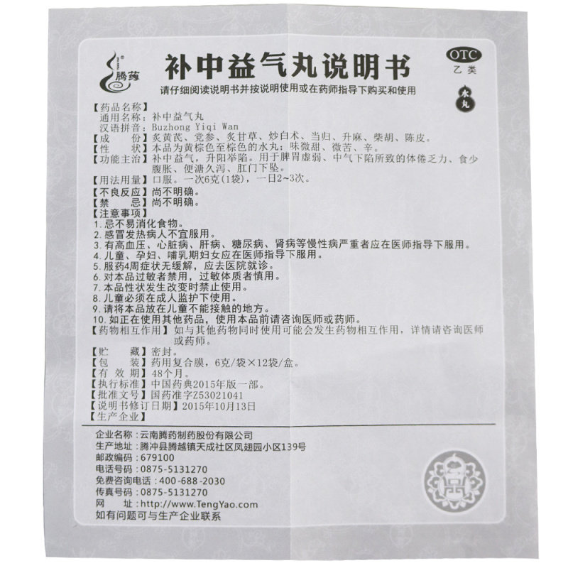腾药 Buzhong Yiqi таблетки 6G*12 мешков/коробки тоник Zhongyiqi -Spleen и желудок слабый аппетит, слабый аппетит, слабость A