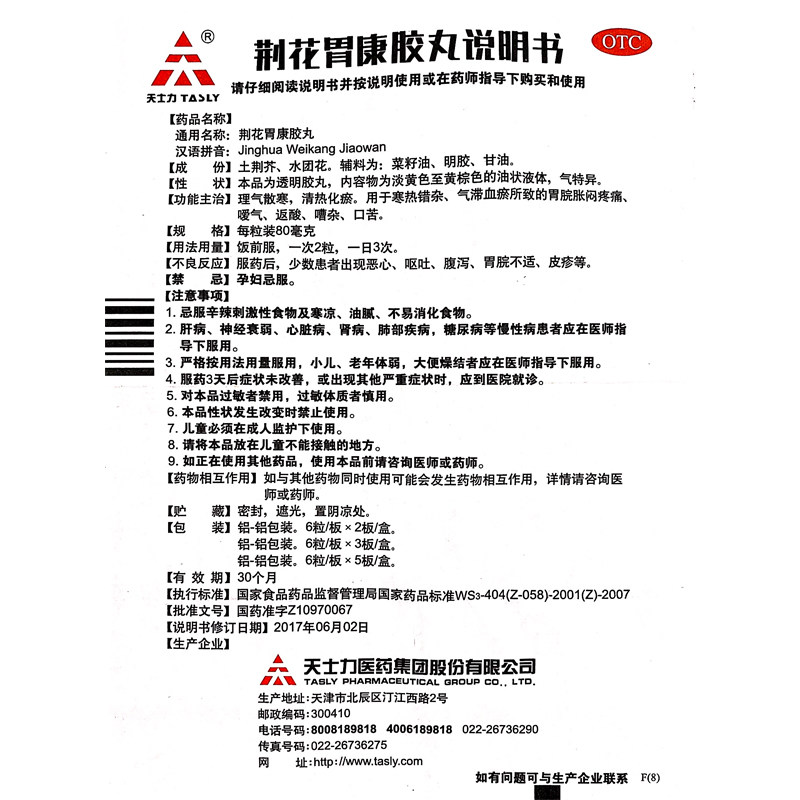 TASLY/天士力 Джингхуа желудок kangjiao таблетки 80 мг*12 капсулы/коробка Qi болезненный вздутие живота взрослый B