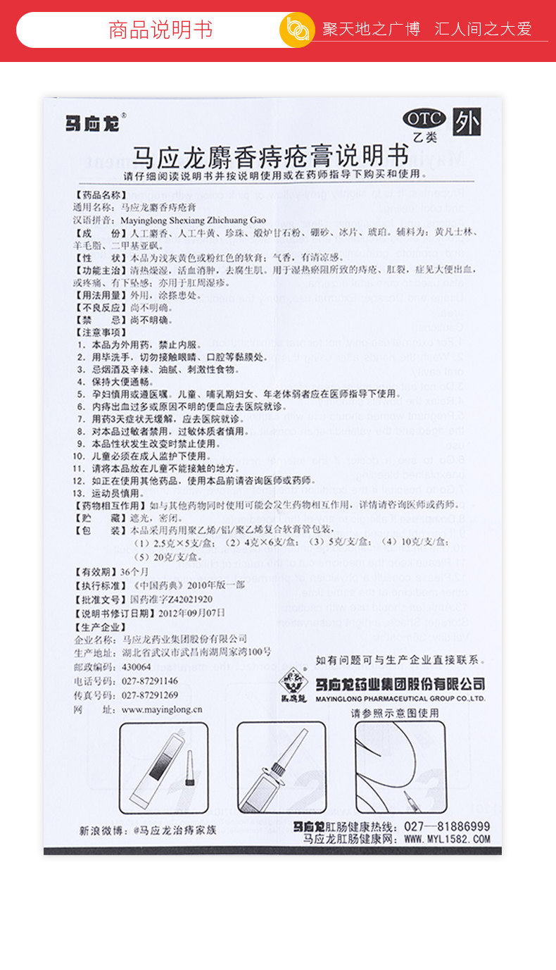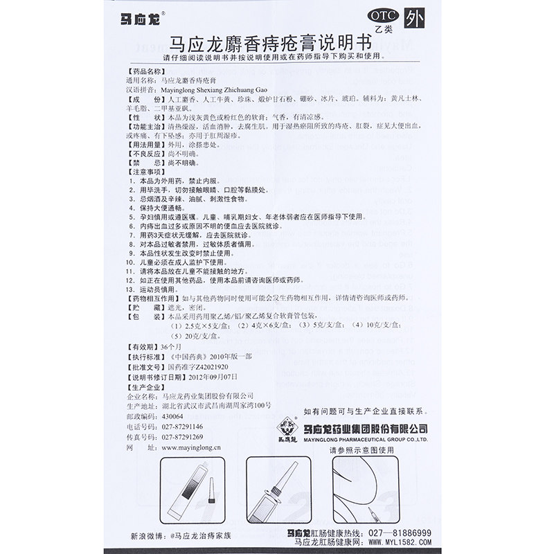 马应龙 Мускус геморрой крем 2,5 г*5 г
