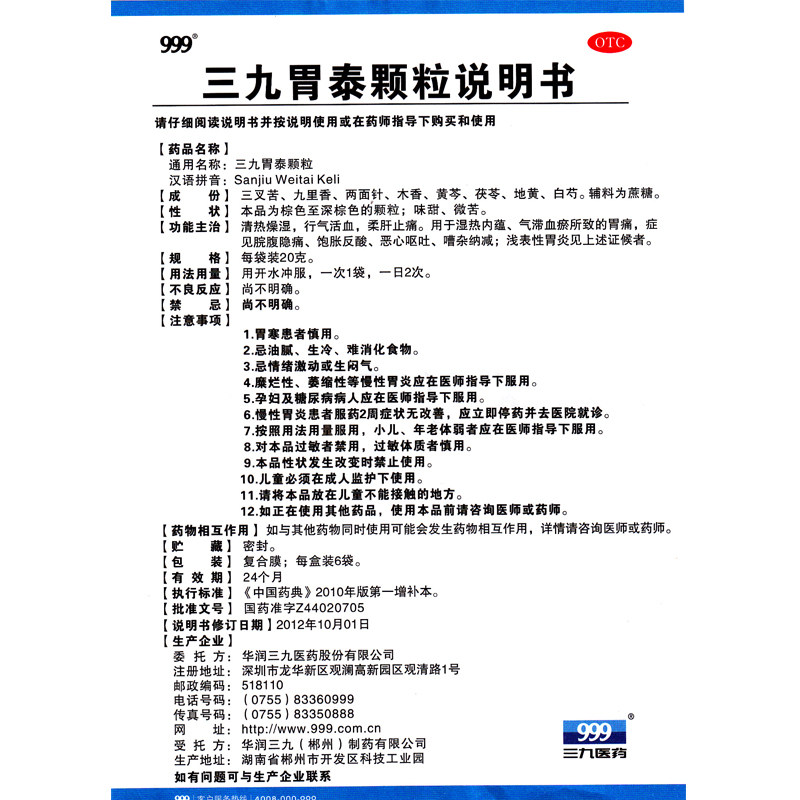 999 Гранулы желудка Sanjiu 6 мешков ци и желудка облегчения боли в животе, ци и способствовать кровообращению