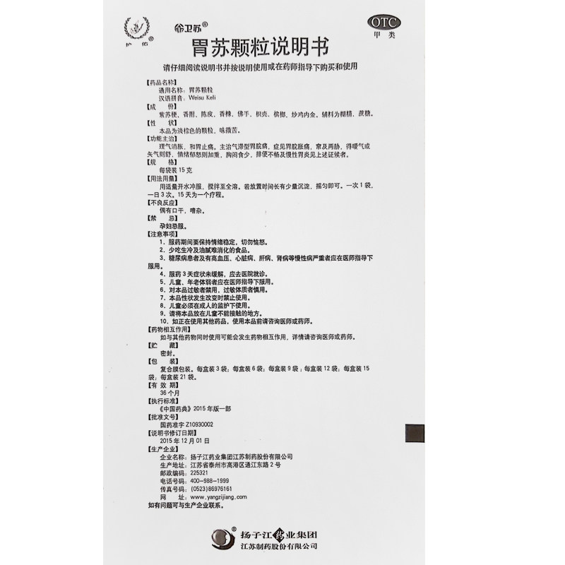 Янцзи Цзян Гранулы желудка 15G*9 мешков ци и вздутие живота
