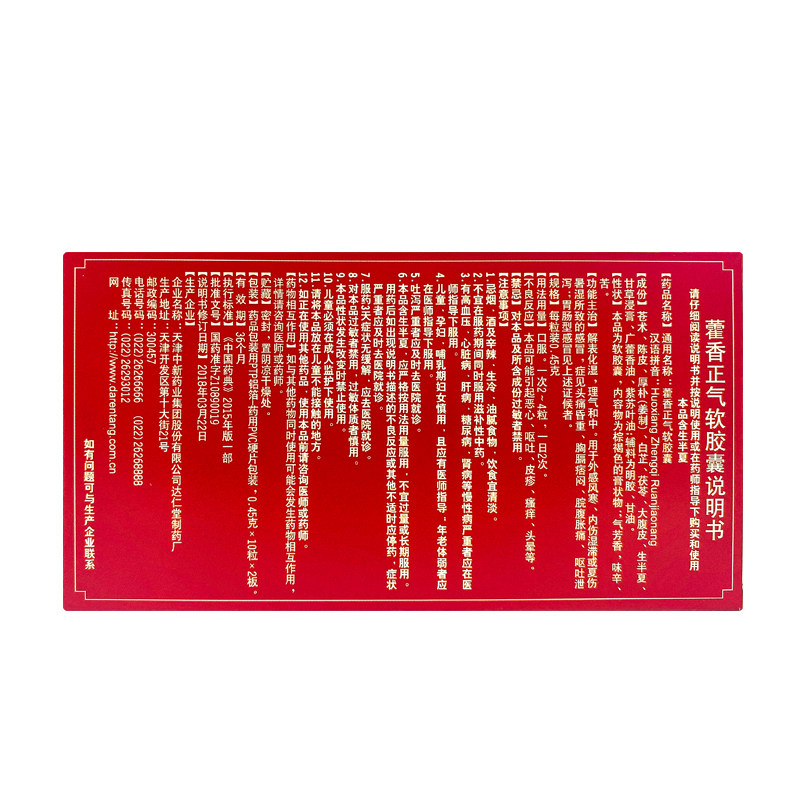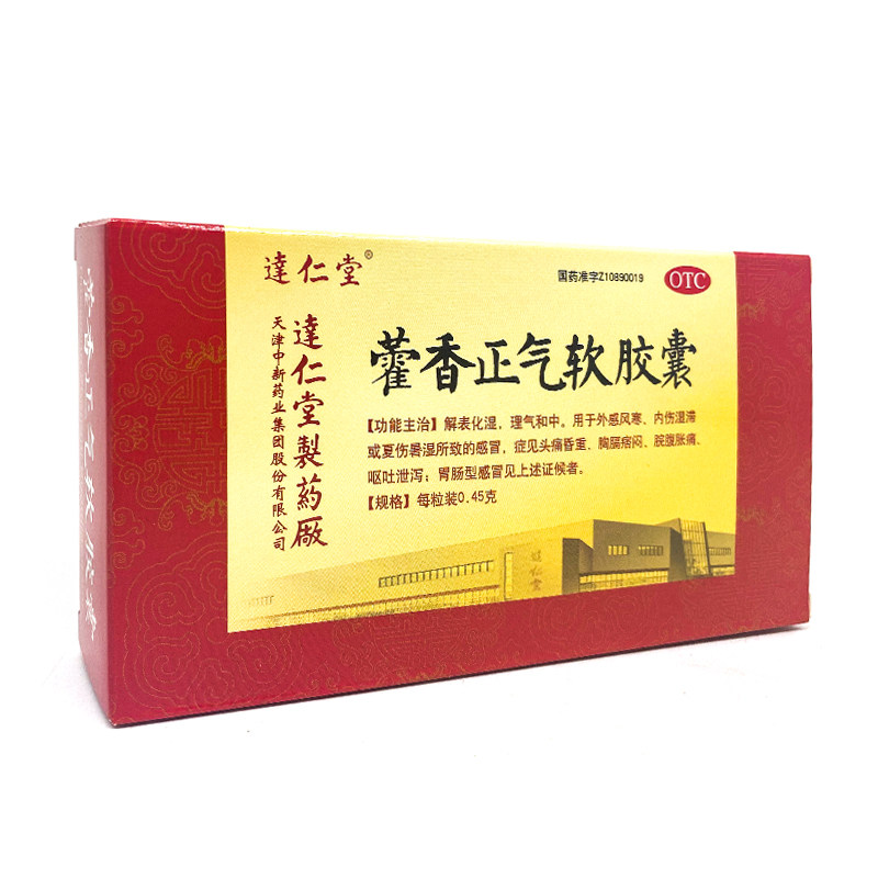 达仁堂 Huoxiang Zhengqi Soft Capsule 0,45G*20 Капсул/коробку для решения влажного и влажного ци и фарфора DA