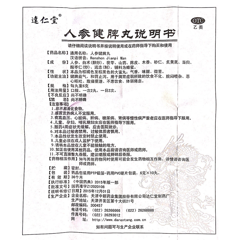 达仁堂 Жингениц Цзяньпи таблетки 10 таблетки одна коробка этого продукта для укрепления селезенки и ци и желудка, чтобы остановить диарею