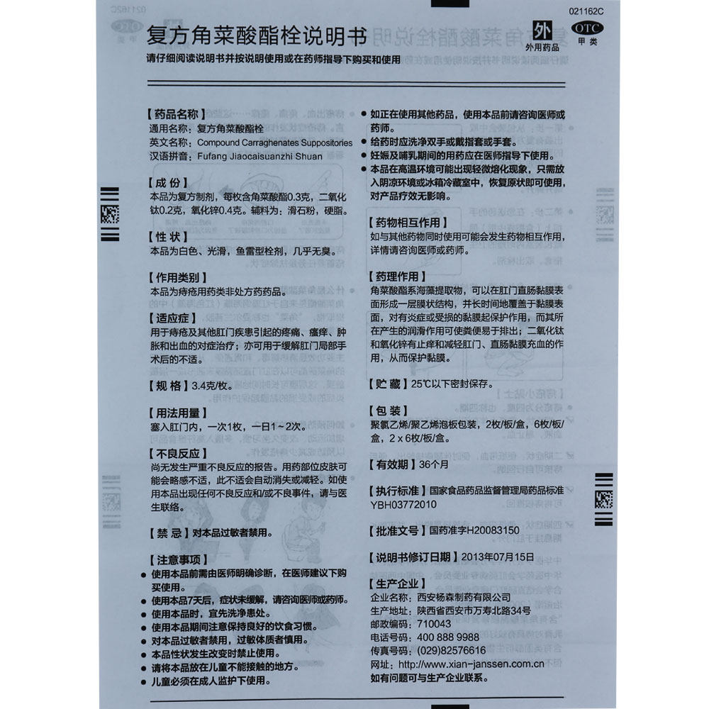 太宁 Суппозитории каррагината соединения 3,4 г*6 капсул/коробка Боль Зуд Отек Кровотечение