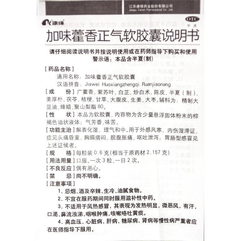 康缘 Добавить аромат Huoxiang Zhengqi Capsule 0,6G*10 Капсулы/коробка DS OTC