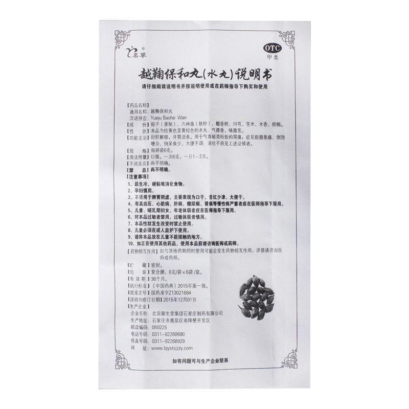 名草 Таблетки Yueju Baohe 6 г * 6 пакетов/коробка F Боль в животе, расстройство желудка, вздутие живота и боль