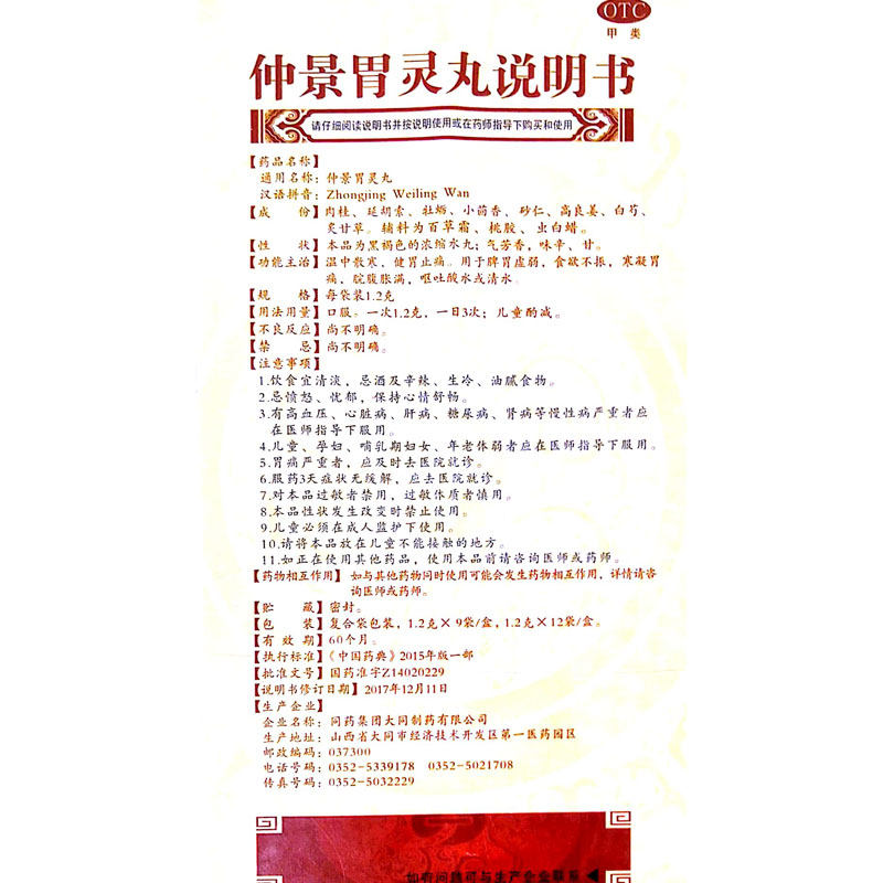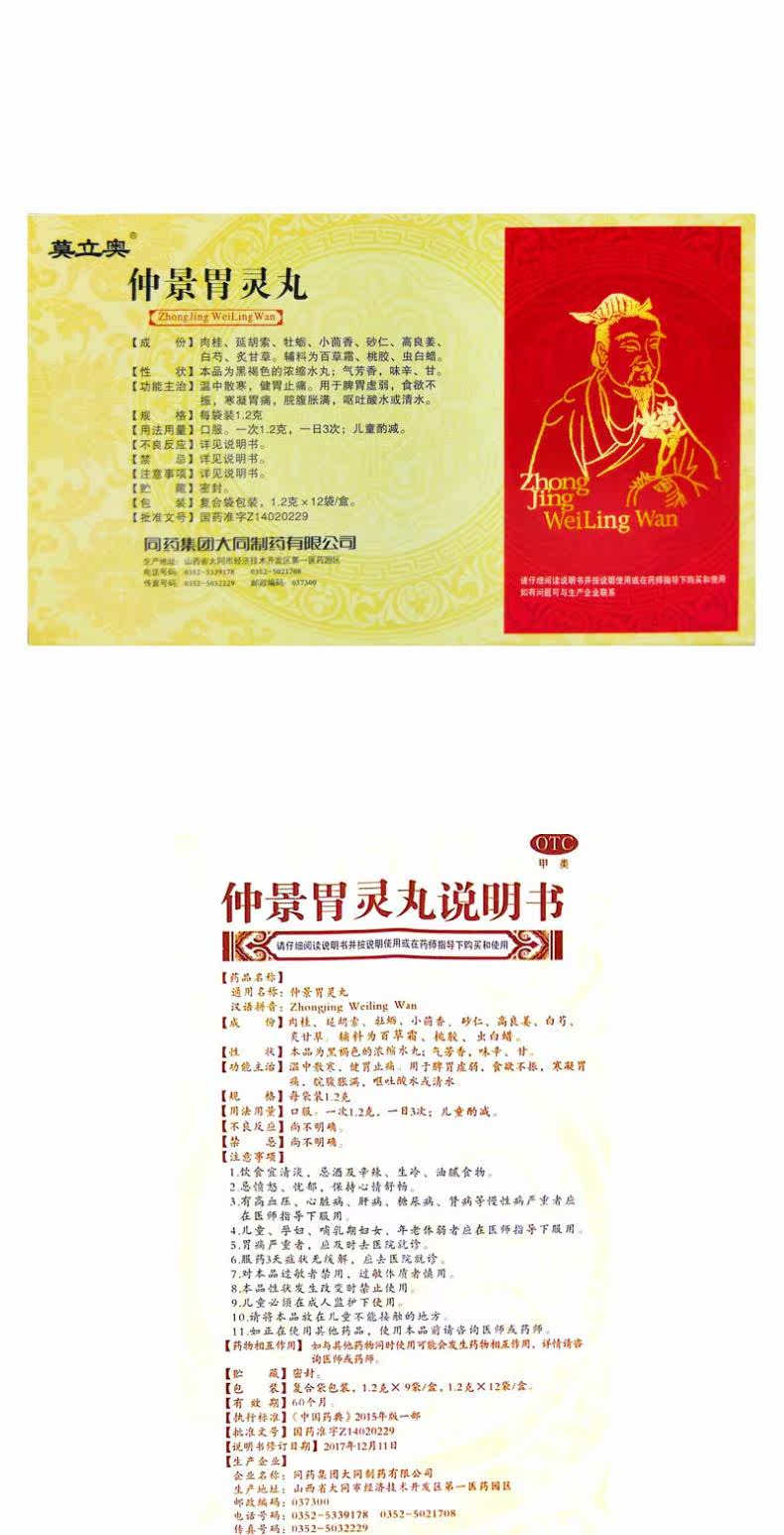 Такое же лекарство Molio Zhongjing Pill Pill 1,2 г*12 мешков/коробка DS Аппетит рвота рвота