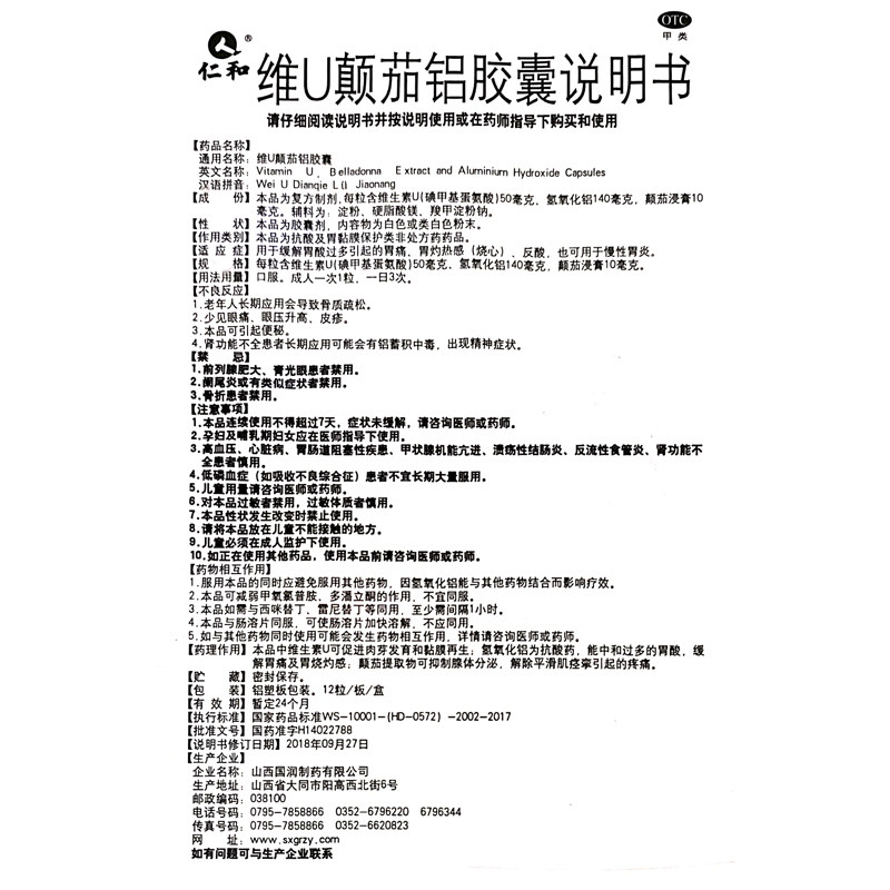 仁和 Victoria U BindStab Алюминиевая капсула 12 капсул/ящик для снятия хронического гастрита DS OTC