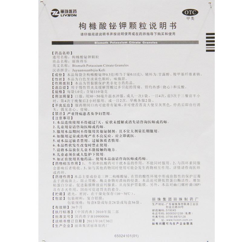 丽珠 Лижу -дельл цитрат цитрат гранулы калия 1,0 г*56 мешков/ящик желудочный и гастрит