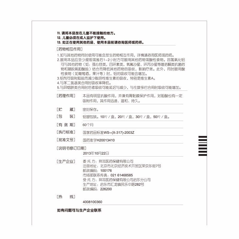 Всего 20,4/коробка] Daxi Алюминиевый карбонат жевательные таблетки 30 таблетки боли в желудке и дискомфорта в желудке хронический гастрит искренний