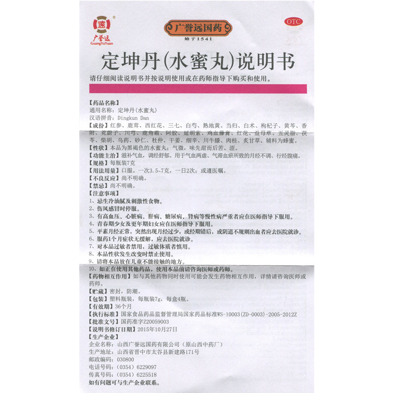 Пакет+ejiao] Гуангю Юань Дин Кундан 7G*4 бутылки водяных таблеток питают ци и кровь и тон, менструальные неровности Шую.
