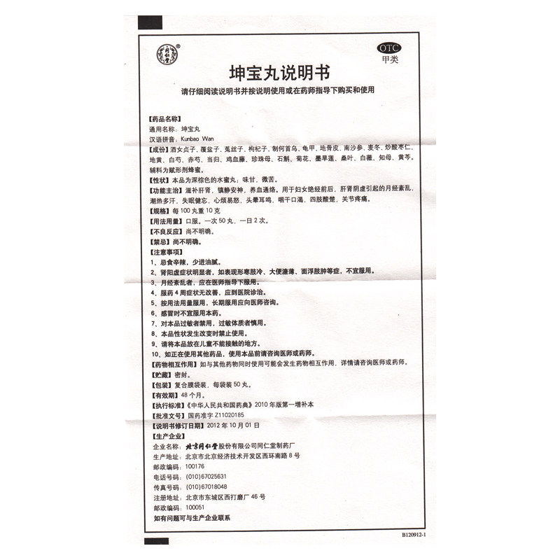 - [1 коробка одежды] Tongrentang Kunbao Pill 10 сумки