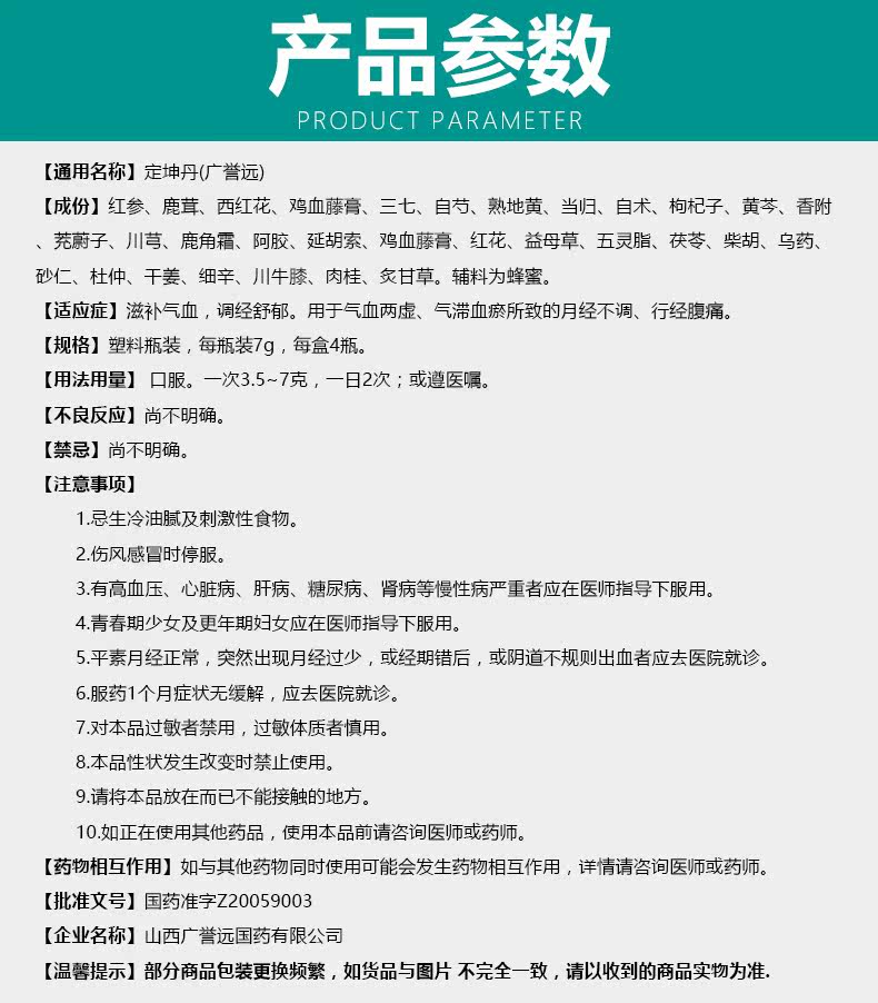 广誉远 Дин Кун Дэн (таблетки Мизуки) 4 бутылки дисменореи менструации, питательной ци и крови, ци и крови, ци и регулирования крови облегчения боли