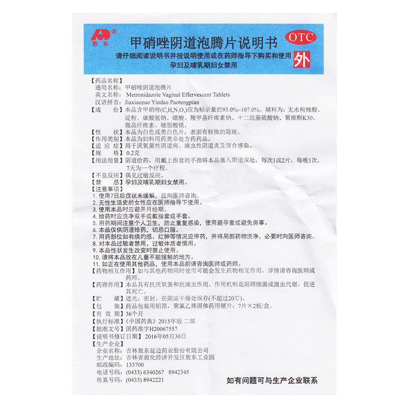 敖东 Метронидазол вагинальные пузырьки 14 кусочков гинекологического воспаления Трихиновая инфекция вагинита