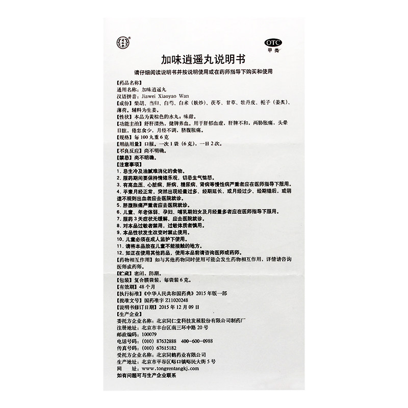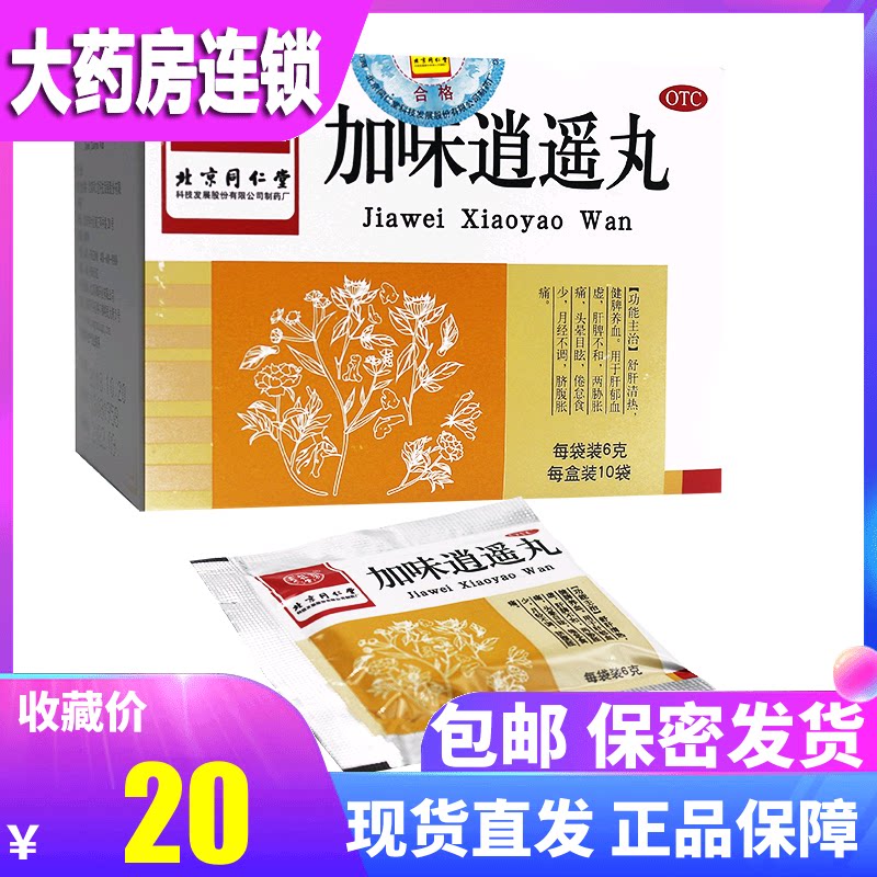 Пекин Тонгрентанг Цзявей Сяаояо таблетки 10 мешков менструальной нерегулярной менструации молочной железы вздутие живота и боль, изысканная печень, питательная селезенка и боль